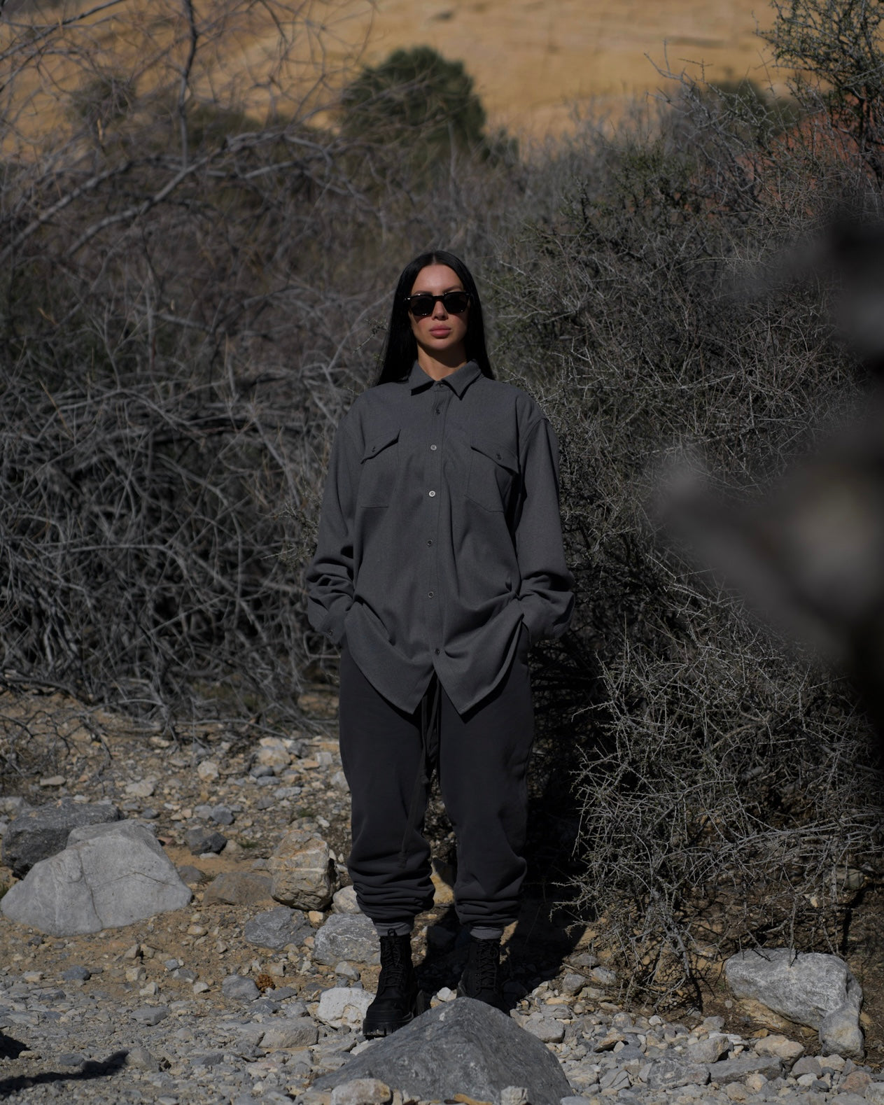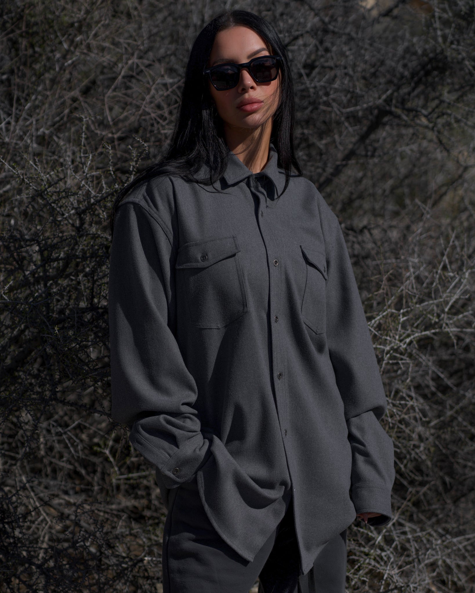 Crafted of soft, heavy cotton flannel and cut in a classic oversized fit. Features Baga logo steel buttons and a vegan suede mini logo patch on the back panel. Long sleeves, button cuffs. Unisex